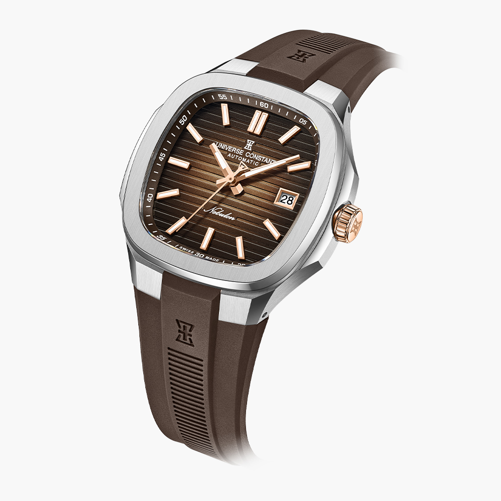 Stainless steel case, automatic movement, date indicator, integrated rubber strap