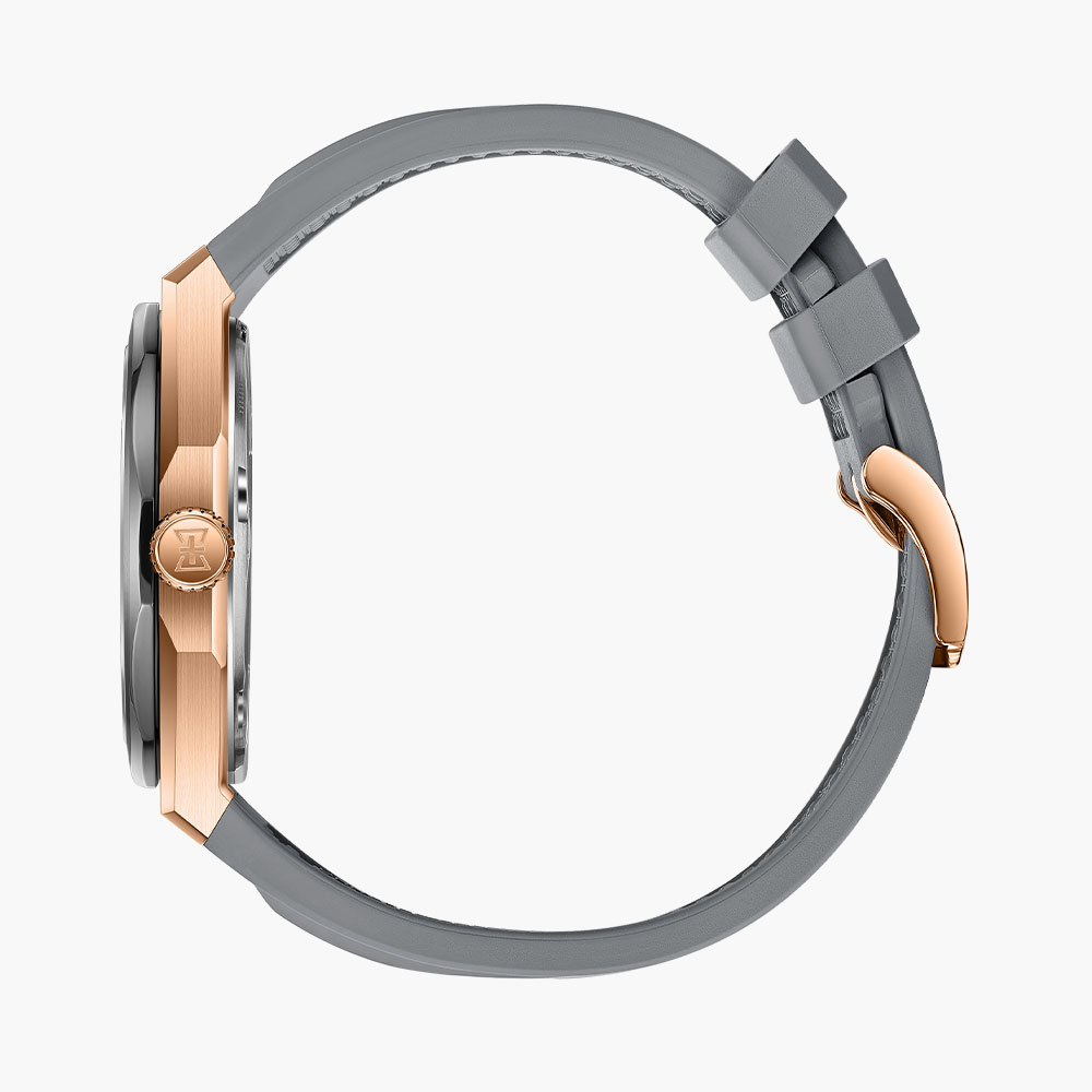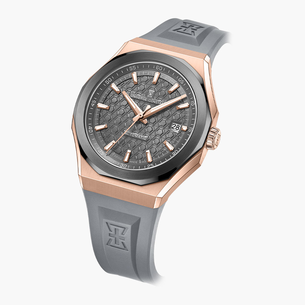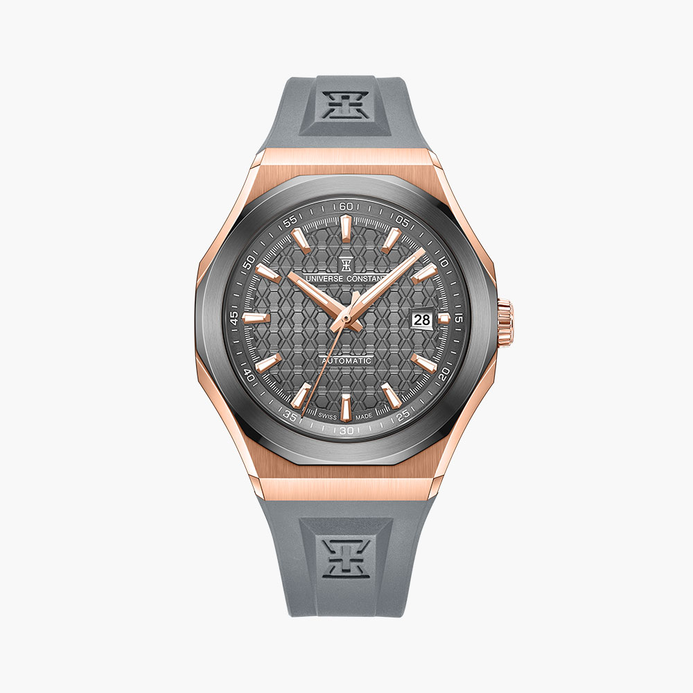 Stainless steel case, automatic movement, date indicator, gun dial, integrated bracelet