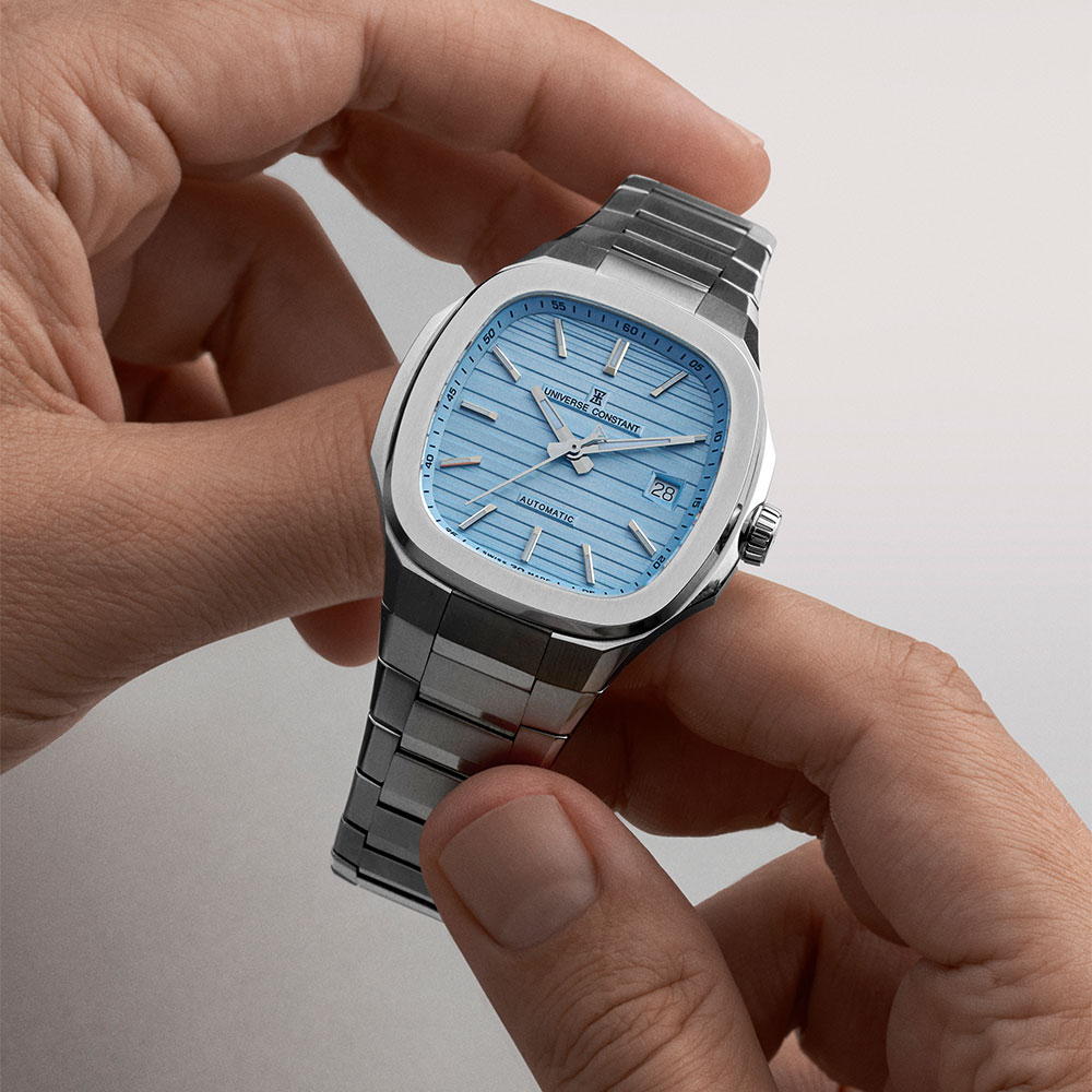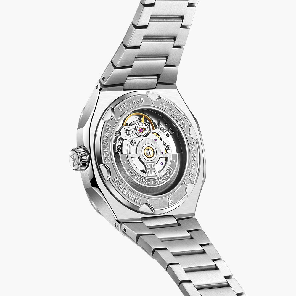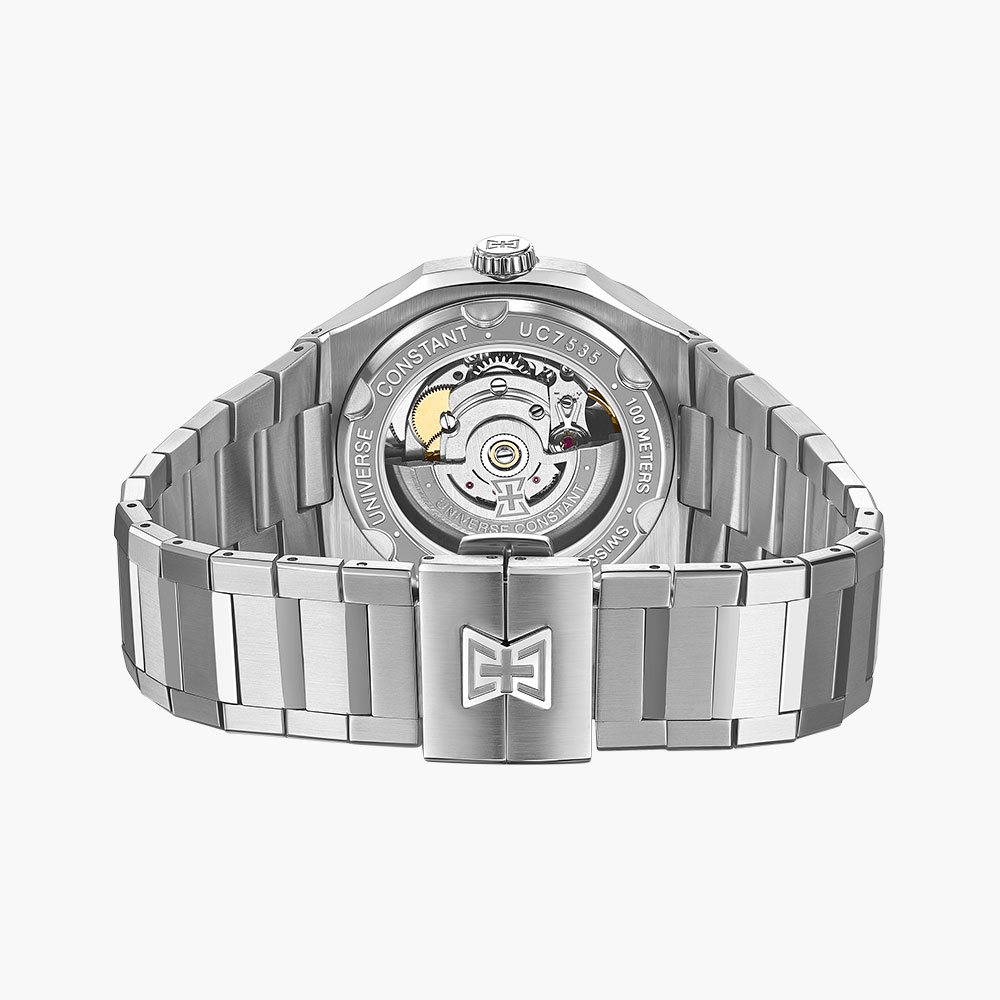 Stainless steel case, automatic movement, date indicator, integrated stainless steel bracelet