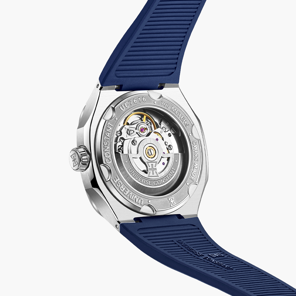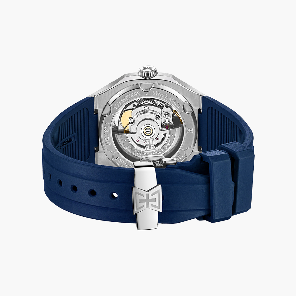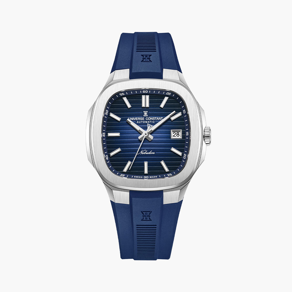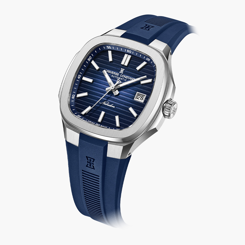 Stainless steel case, automatic movement, date indicator, integrated rubber strap
