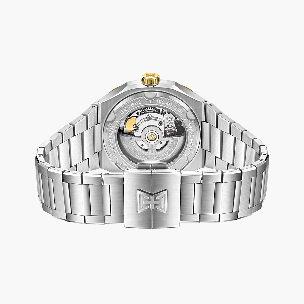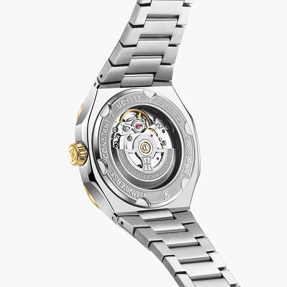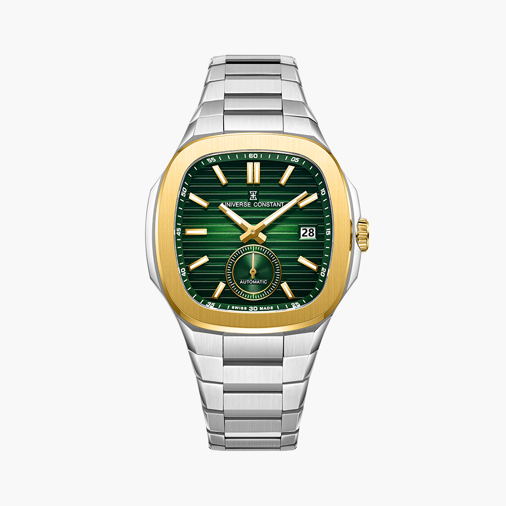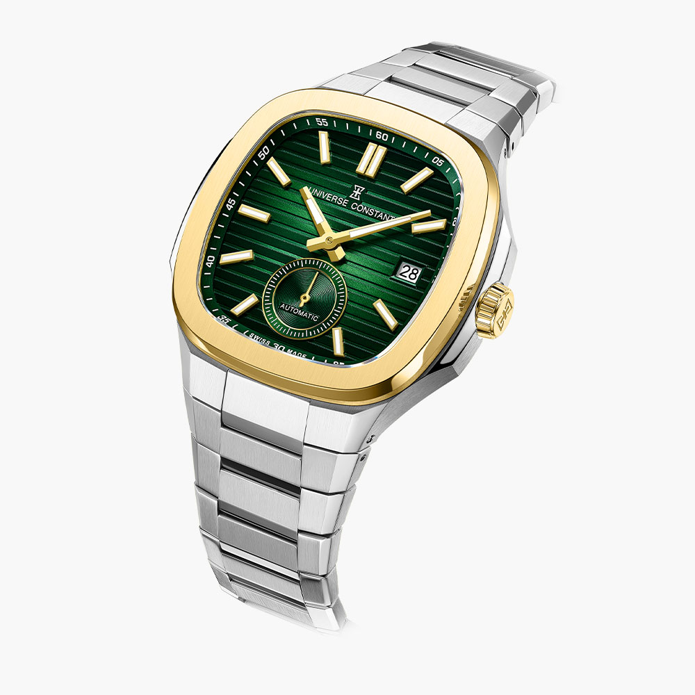 Stainless steel case, automatic movement, date indicator, small seconds, integrated stainless steel bracelet