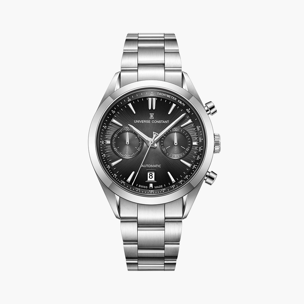 Stainless steel case, automatic movement, date indicator, black dial, stainless steel bracelet