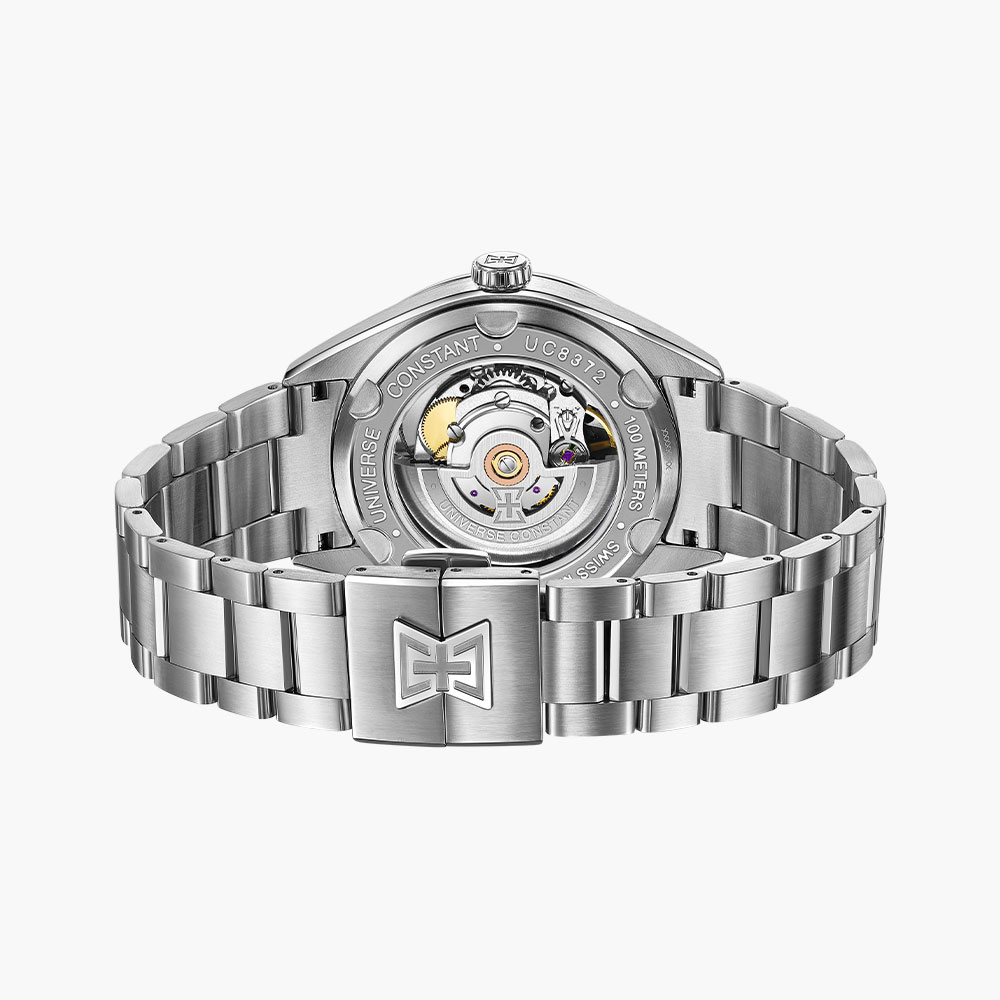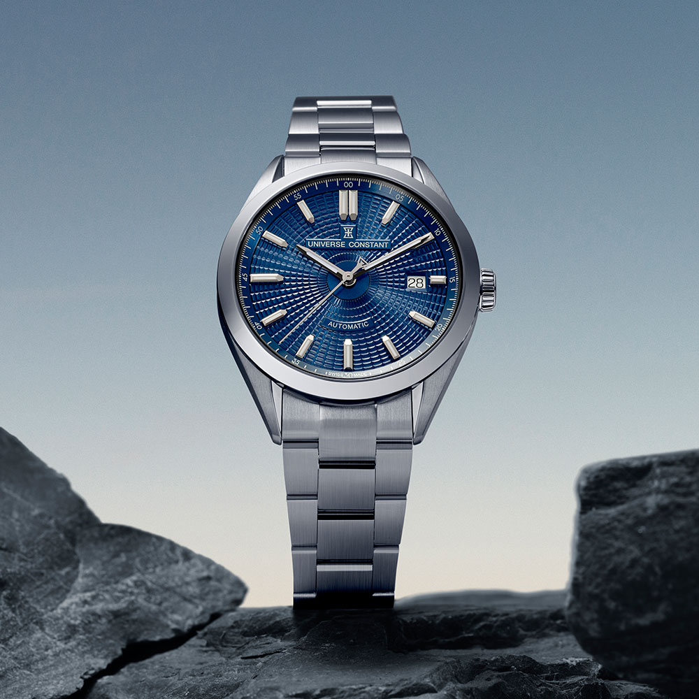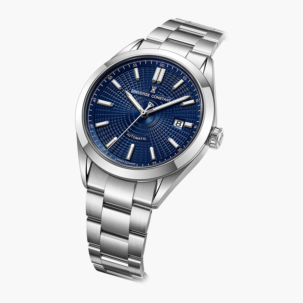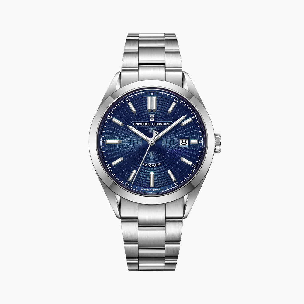 Stainless steel case, automatic movement, date indicator, blue dial, stainless steel bracelet