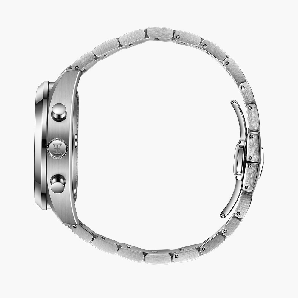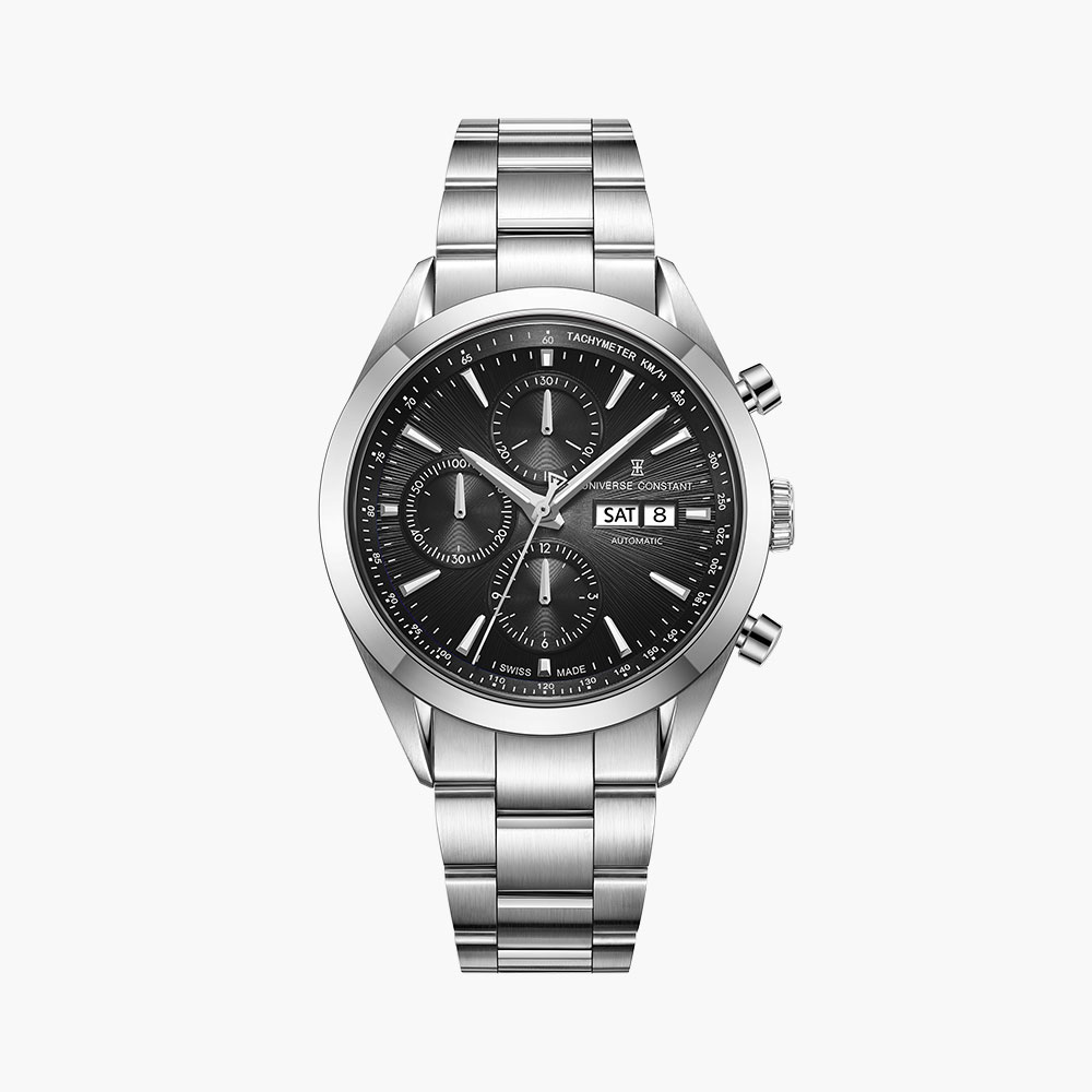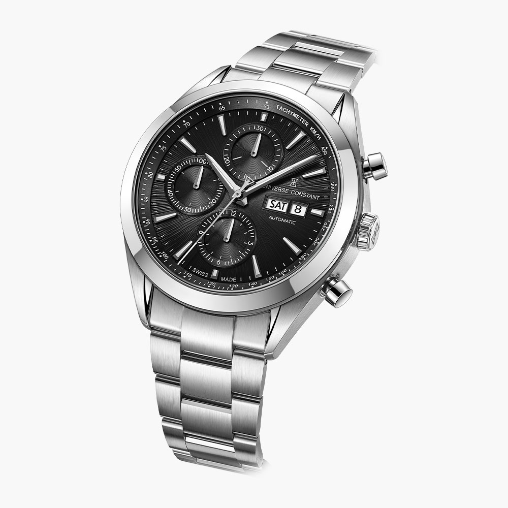 Stainless steel case, automatic movement, chronograph tri-compax, day&date indicator, stainless steel bracelet