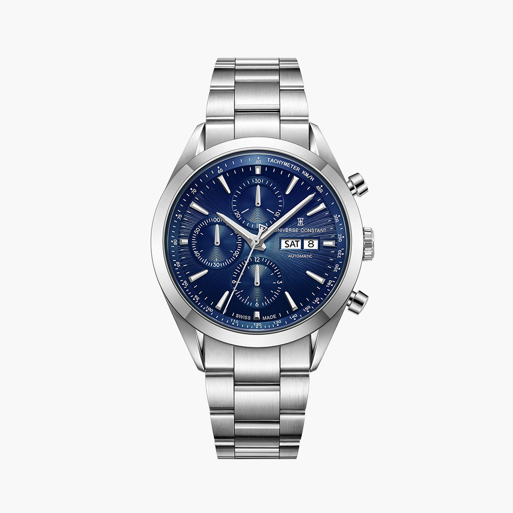 Stainless steel case, automatic movement, chronograph tri-compax, day&date indicator, stainless steel bracelet