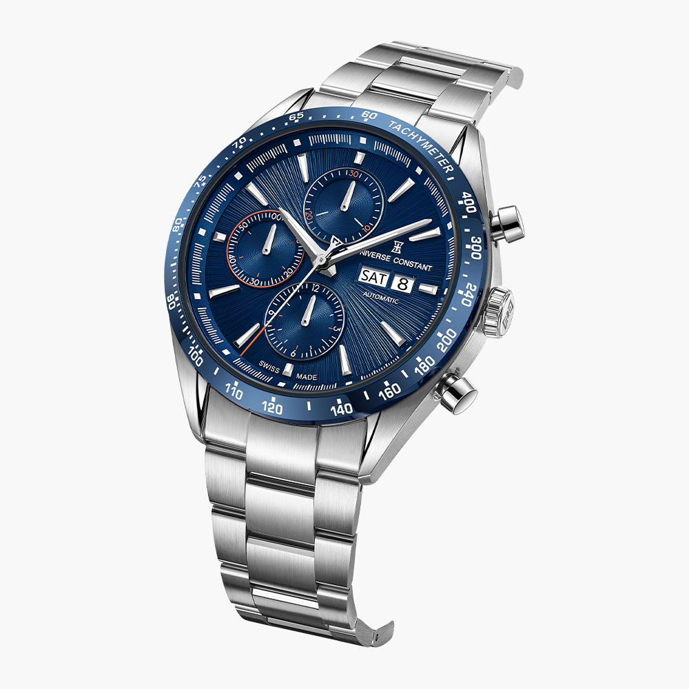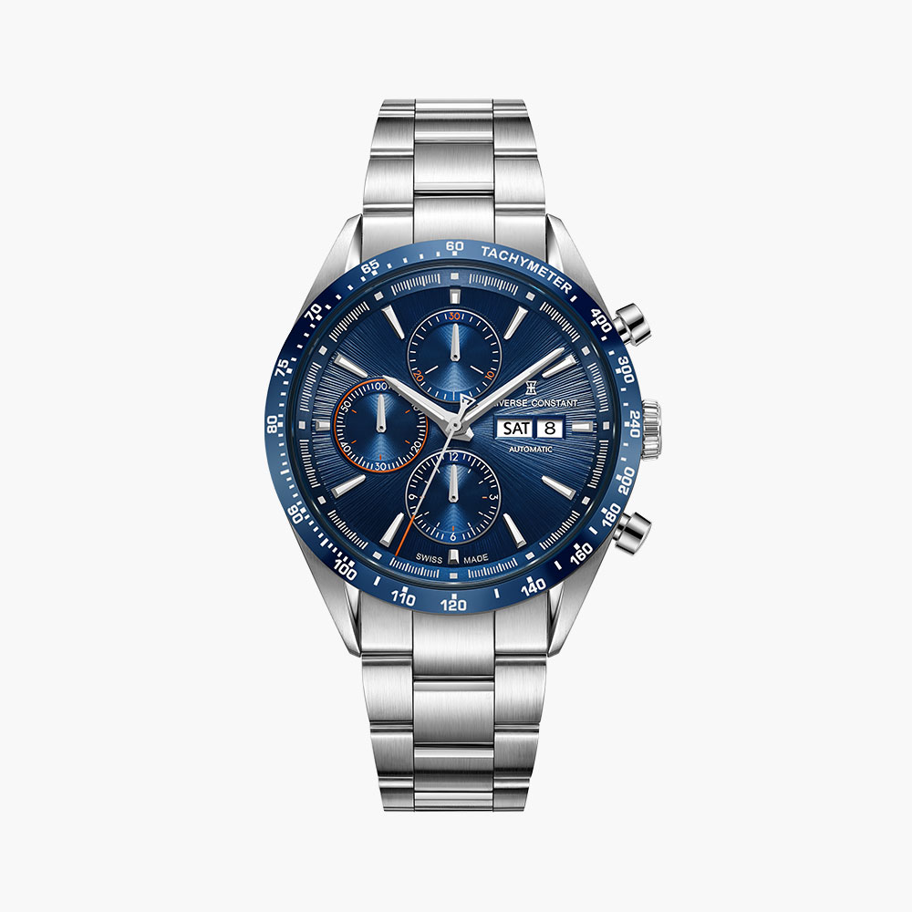 Stainless steel case, automatic movement, chronograph tri-compax, day&date indicator, stainless steel bracelet