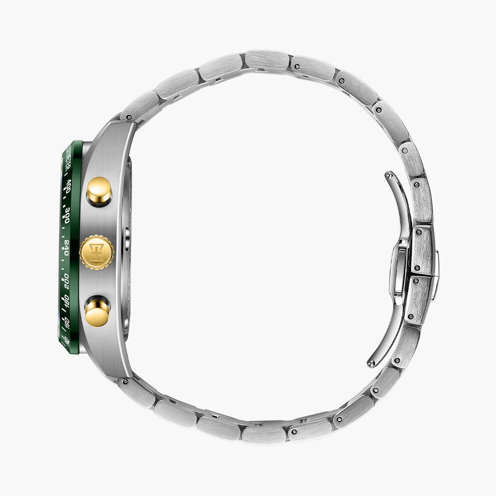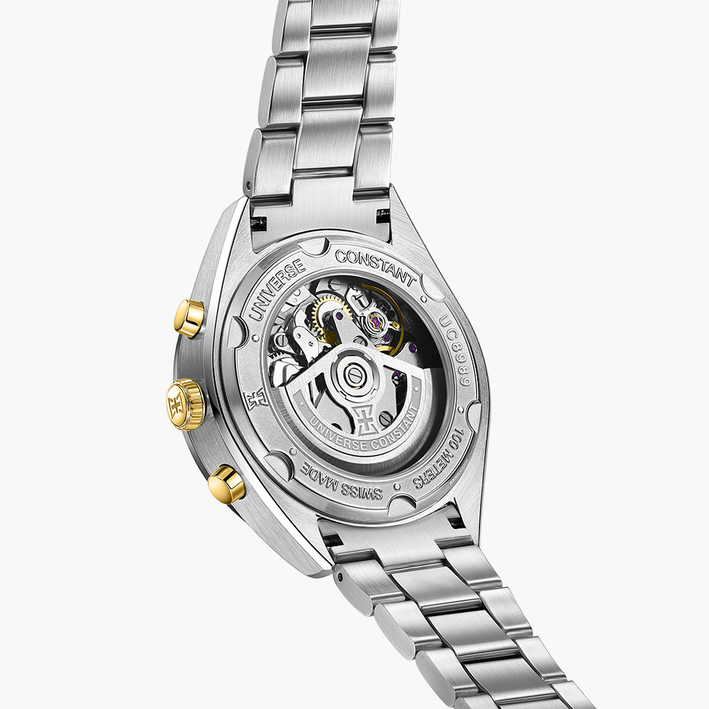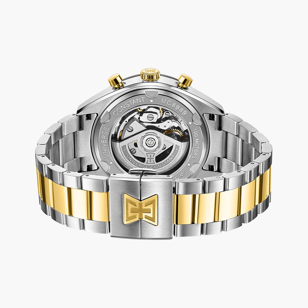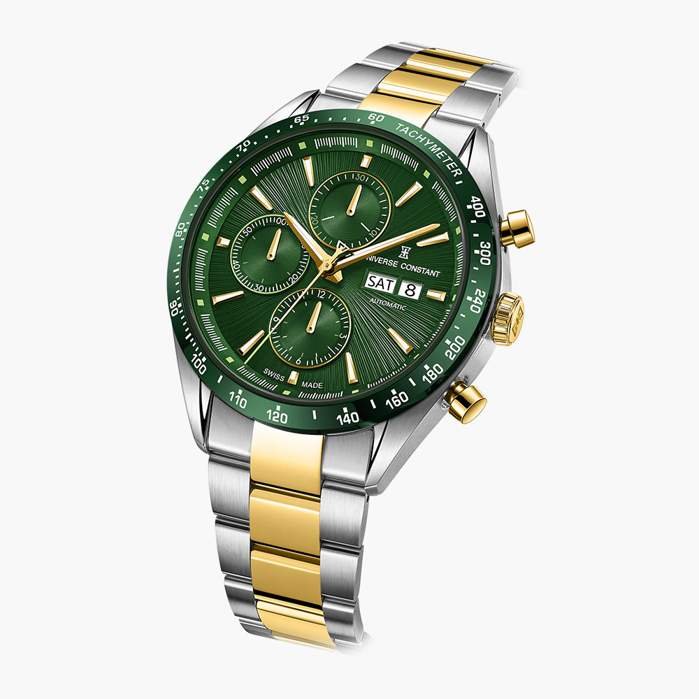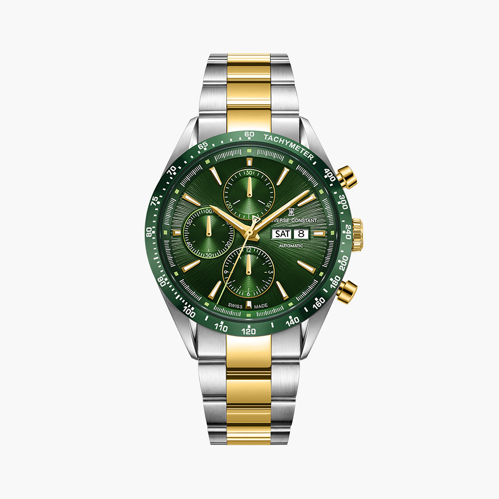 Stainless steel case, automatic movement, chronograph tri-compax, day&date indicator, bi-color stainless steel bracelet